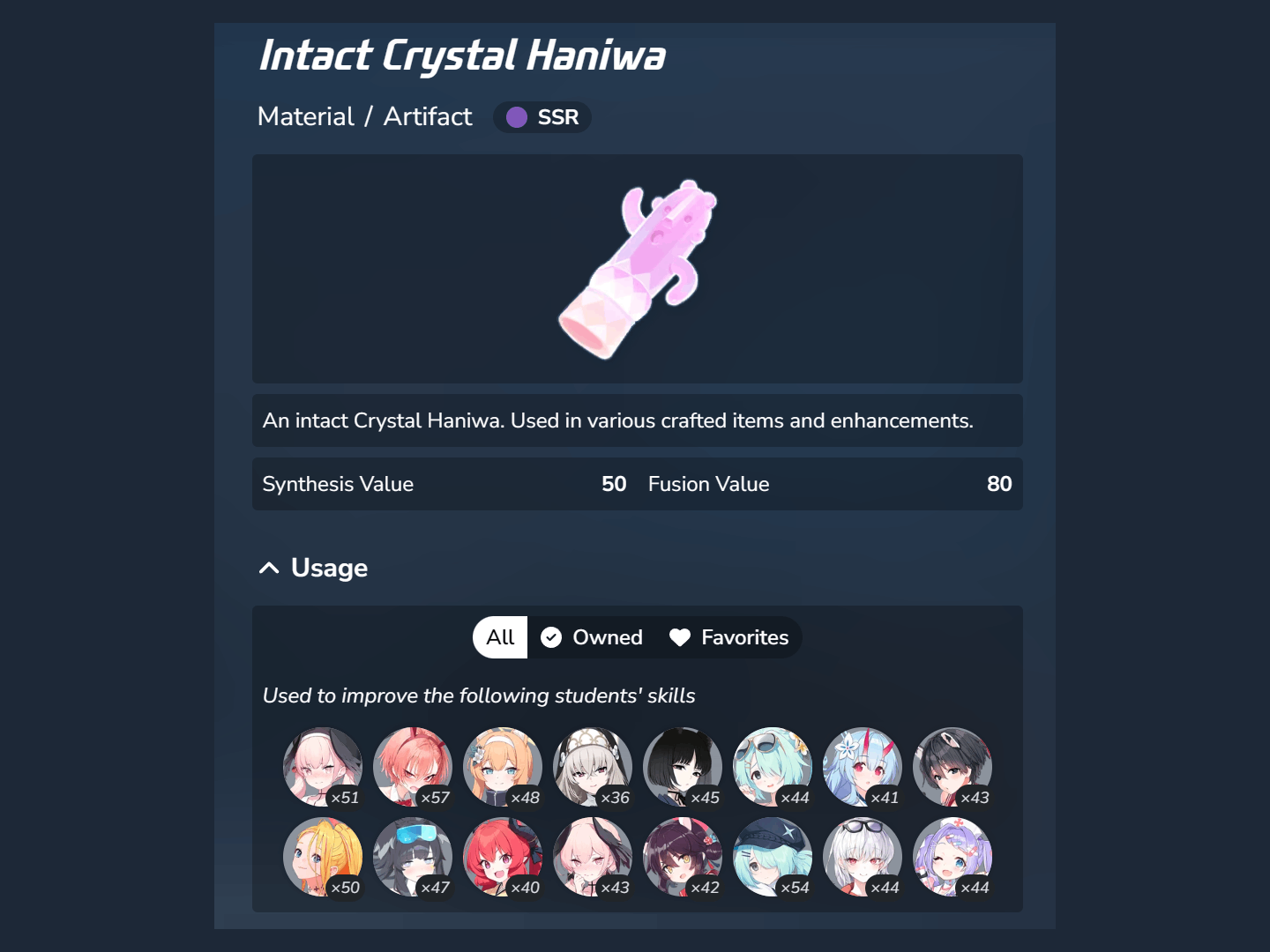 "An intact Crystal Haniwa. Used in various crafted items and enhancements."